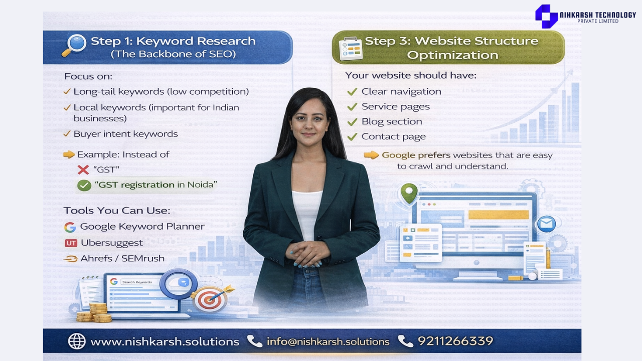 Your website should have: Clear navigation Service pages Blog section Contact page 👉 Google prefers websites that are easy to crawl and understand