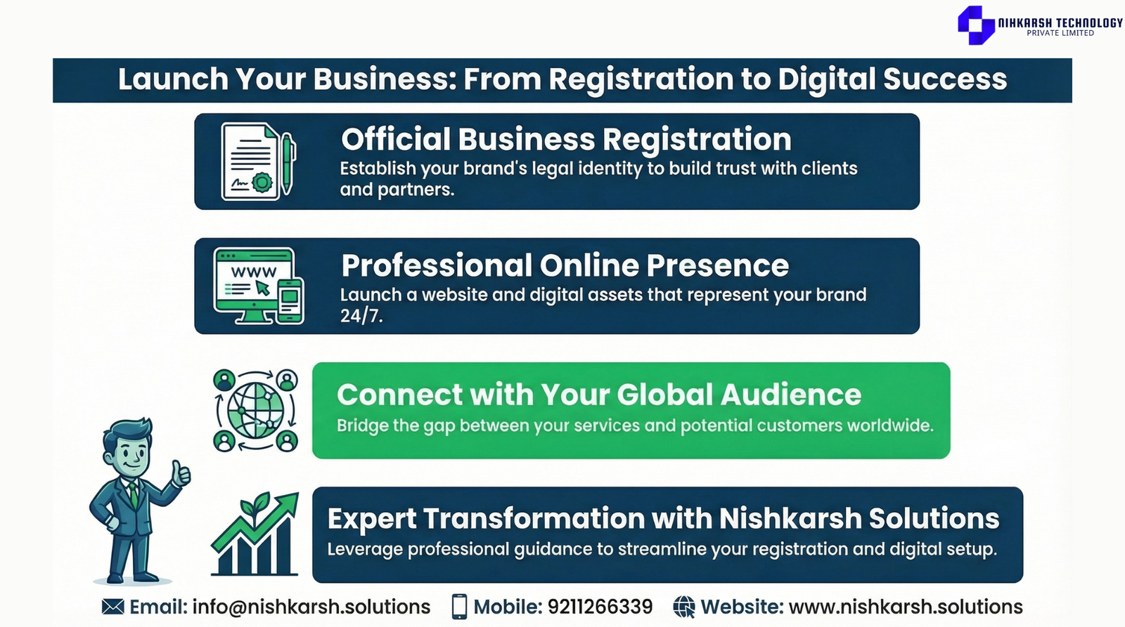 This is where Liquetax and Nishkarsh come together to create a powerful support system for aspiring entrepreneurs. While Liquetax helps you legally register and structure your business, Nishkarsh helps you build a strong online presence and access government contracts that can accelerate your growth.